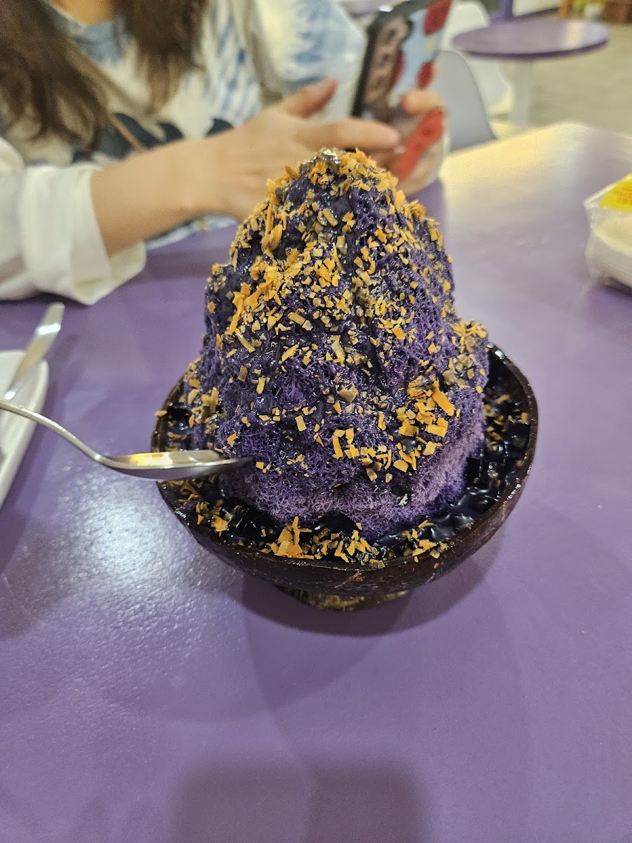 As you step inside, you’ll be enveloped by a warm and inviting atmosphere. The space is clean and minimalistic, allowing the rich hues of ube to take center stage. The ambiance strikes a perfect balance between cozy and chic—ideal for both a casual lunch with friends and a peaceful moment of reflection over coffee.